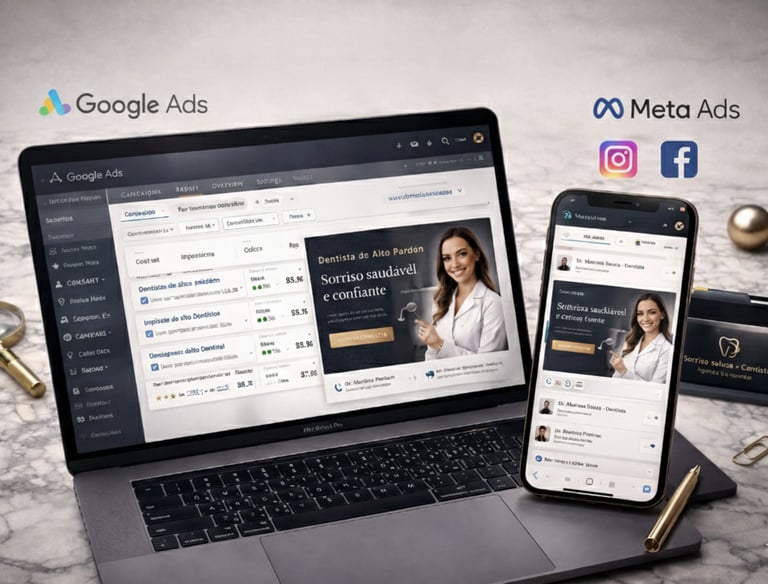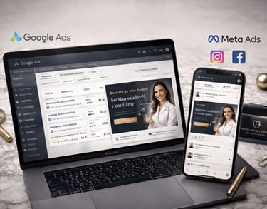 ✅ Configuração estratégica de Google Ads e Meta Ads.